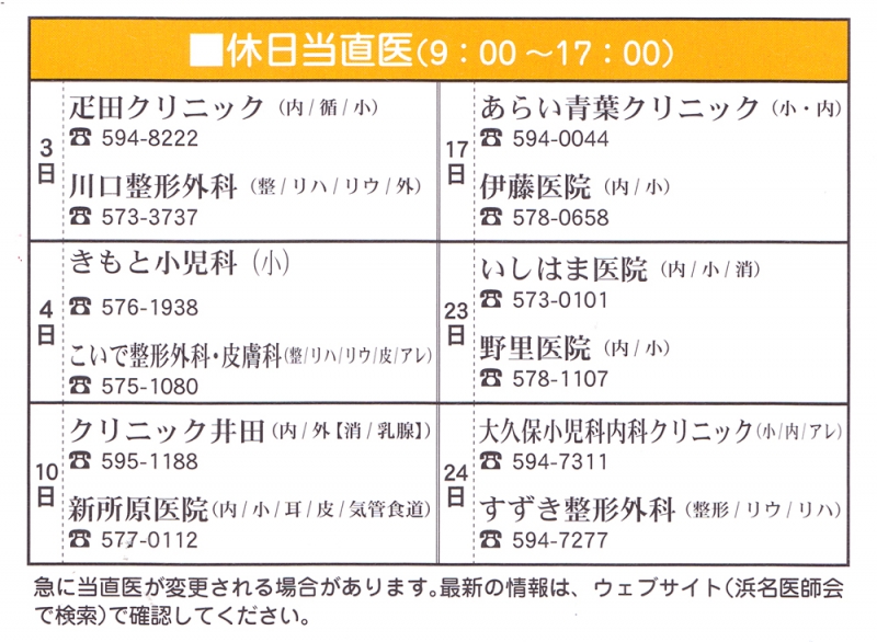 TOP > トピック一覧 > 地域情報 > 2013年11月の当直医(湖西・新居)