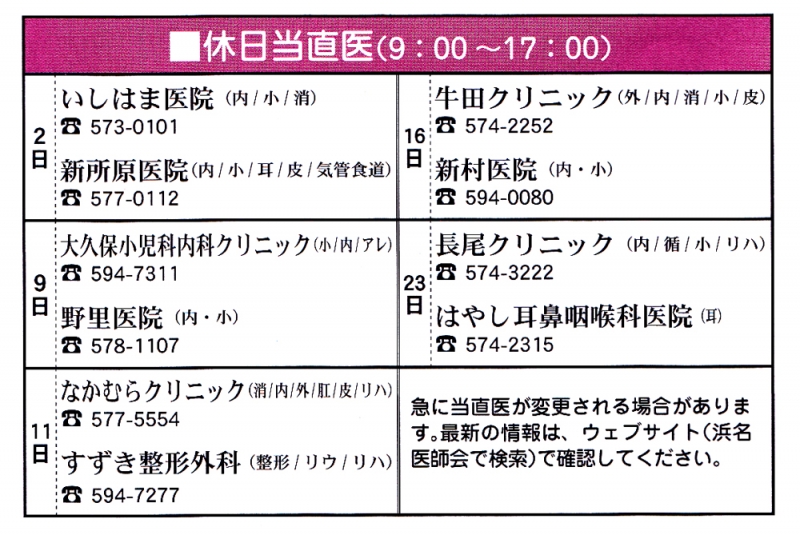 TOP > トピック一覧 > 地域情報 > 2014年2月 休日当直医(湖西市内)