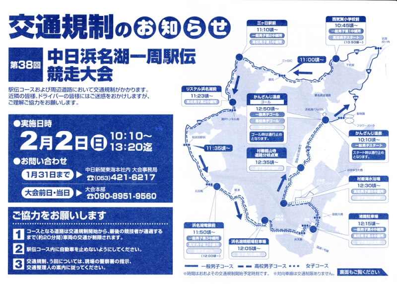 ■第38回 中日 浜名湖一周駅伝競走大会が開催されます。