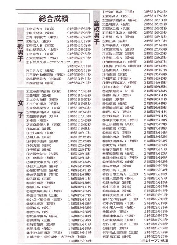TOP > トピック一覧 > 地域情報 > 第38回浜名湖一周駅伝大会結果