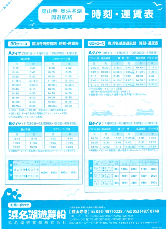 TOP > トピック一覧 > 地域情報 > 浜名湖遊覧船時刻表