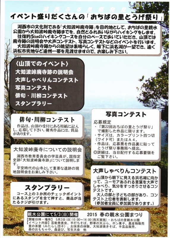 湖西市「おちばの里」で自然とふれあい春を満喫しませんか?