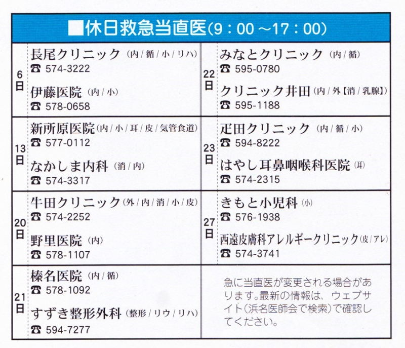 TOP > トピック一覧 > 地域情報 > 2015年 9月 湖西市休日当直医情報。