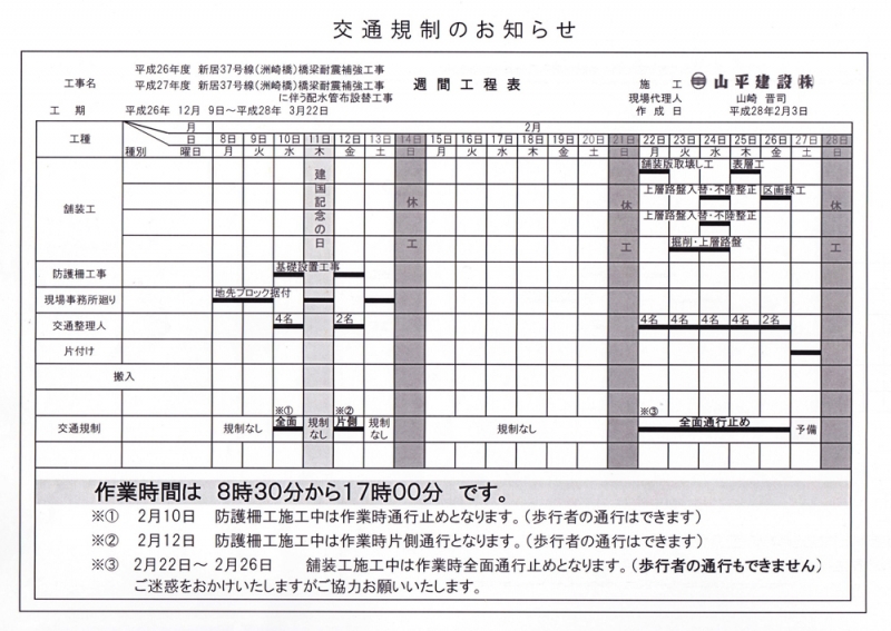 TOP > トピック一覧 > 地域情報 > 新居37号線(洲崎橋)交通規制のお知らせ