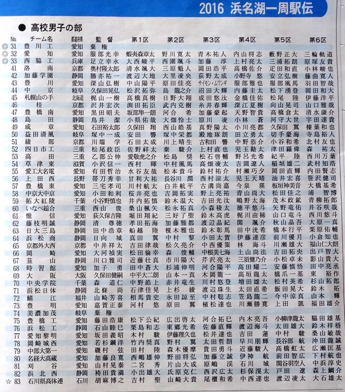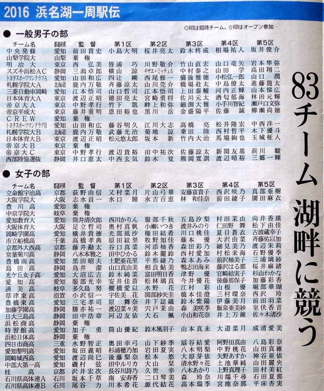 TOP > トピック一覧 > 地域情報 > 2016年浜名湖一周駅伝出場者