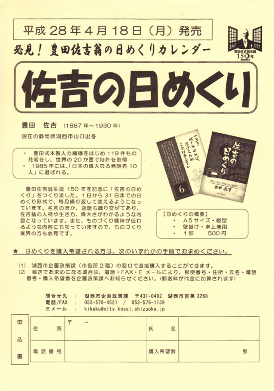 TOP > トピック一覧 > 地域情報 > 佐吉の日めくりカレンダー 平成28年4月18日(月)発売