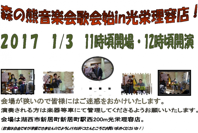 新年早々ですが、森のくま音楽会2017の最初の音を楽しむイベントです。