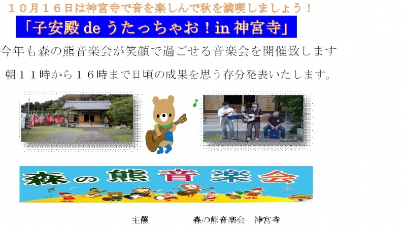 TOP > トピック一覧 > 森の熊さん > 子安殿de歌っちゃお!
