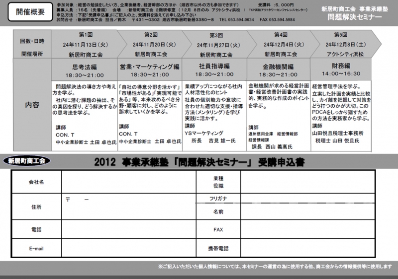 TOP > トピック一覧 > > 新居商工会 事業継承塾 2012 セミナー