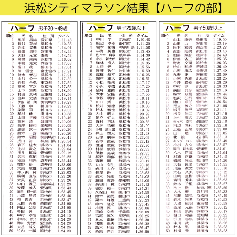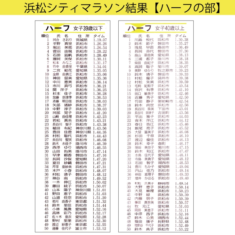第9回浜松シティマラソン結果【ハーフの部】
