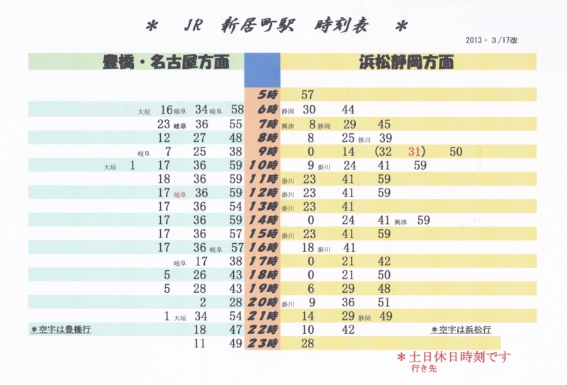 もちろん新居町駅の時刻も変わります。