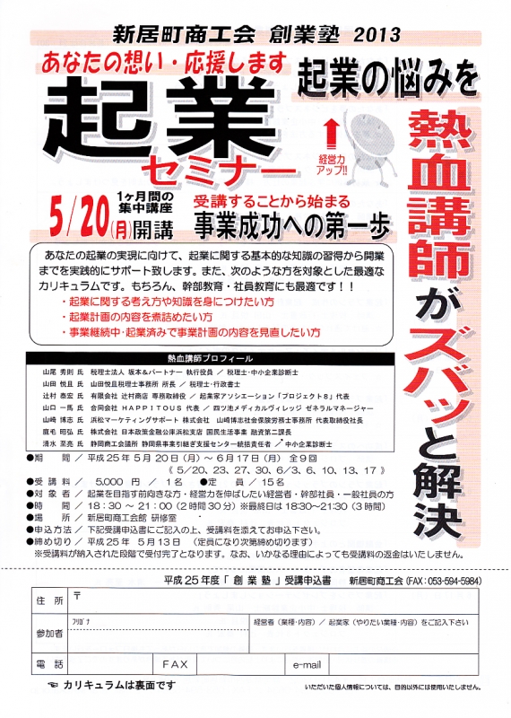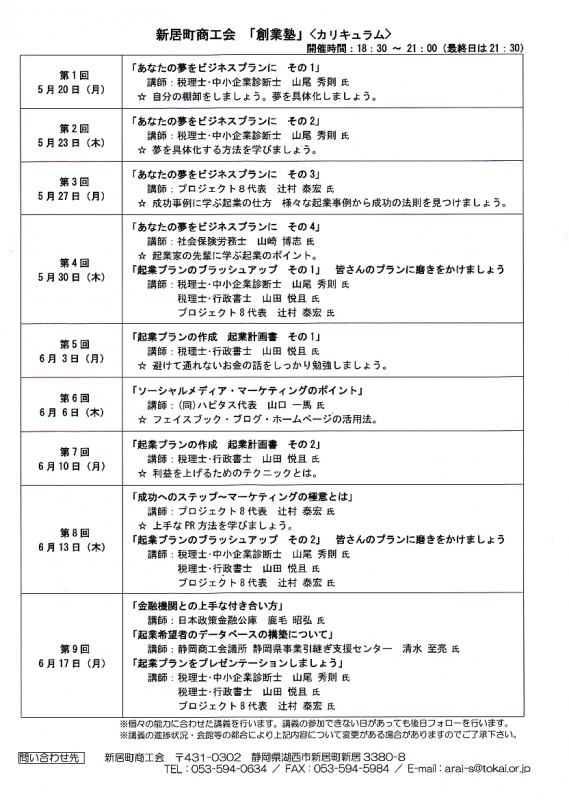 TOP > トピック一覧 > お知らせ > 新居町商工会 「創業塾」 開講