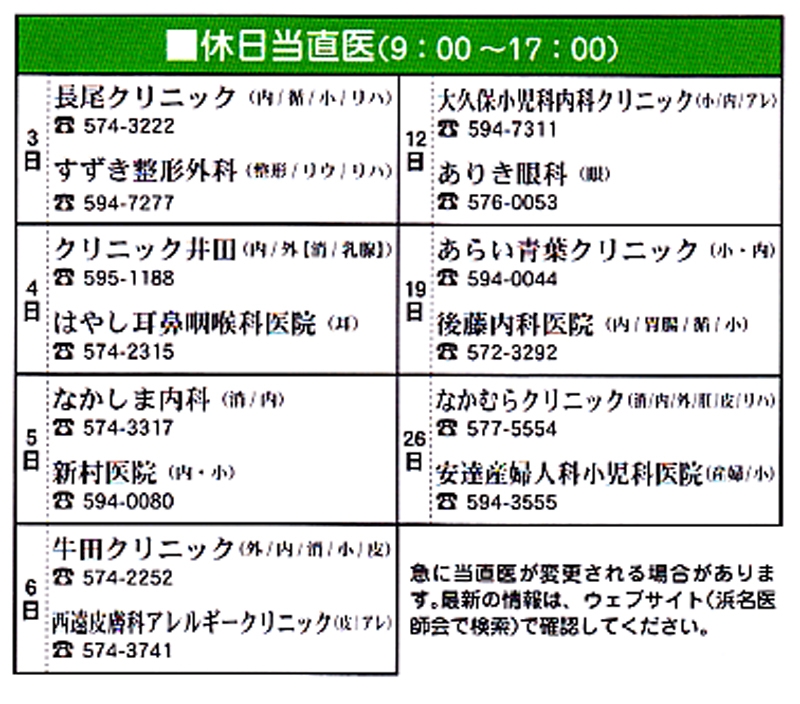 TOP > トピック一覧 > 地域情報 > 2013年5月 湖西市休日当直医